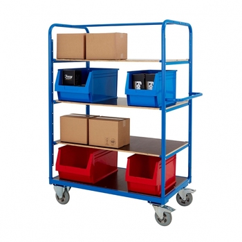 Einfache Montage Industrielle Metall walze Hochleistungs-Holzdeck Flat 4 Level Shelf Truck